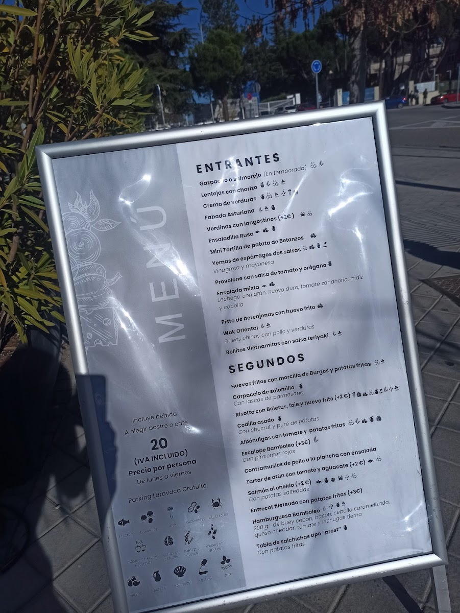 Nestled in the charming district of Moncloa-Aravaca, Restaurante Bamboleo showcases a vibrant menu that echoes the spirit of culinary innovation. The standout dish, Pato Laqueado, offers a delightful pairing of duck with crepes and hoisin sauce, perfect for sharing. Meat lovers will appreciate the Codillo Asado and the Hamburguesa Bamboleo, made from 200 grams of prime beef. For lighter fare, the Ensalada Templada De Pollo brings a refreshing touch with its crunchy croutons and tangy vinaigrette.